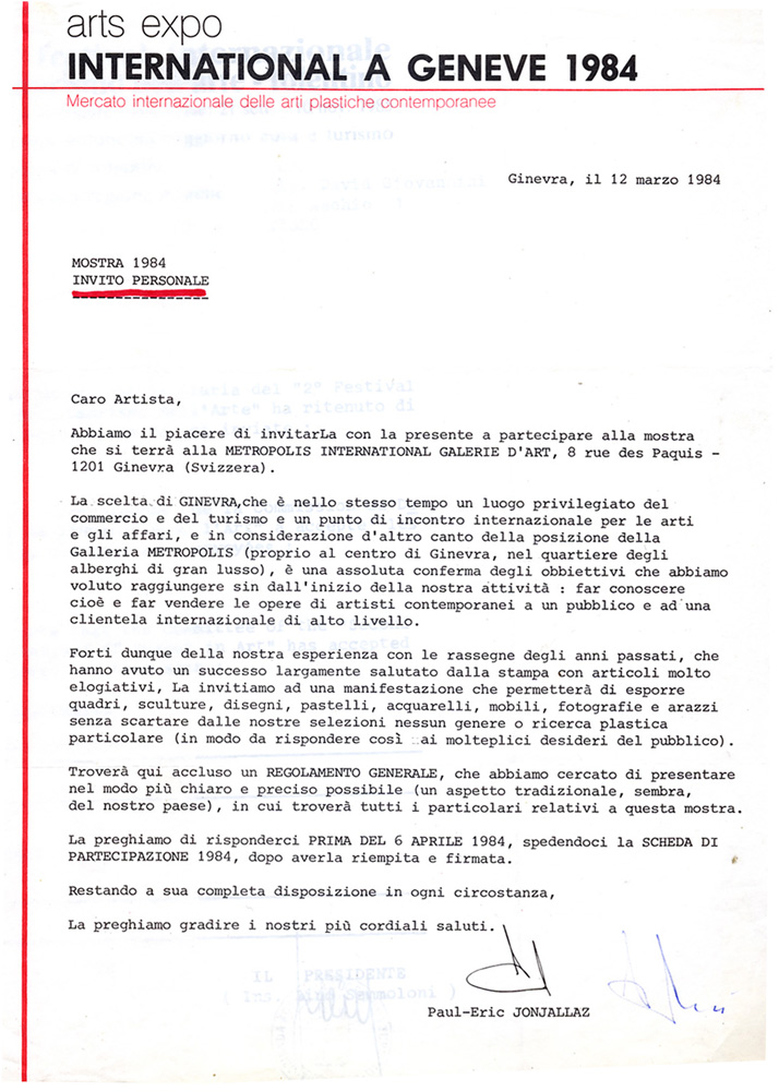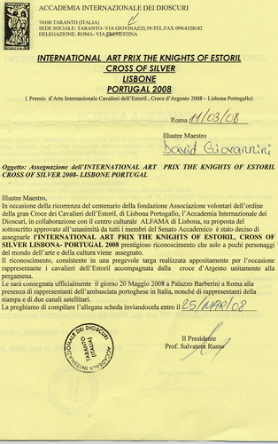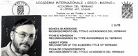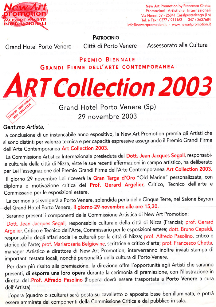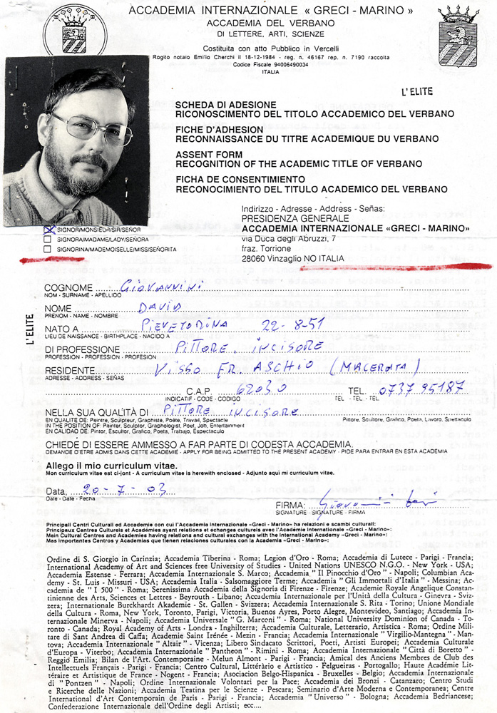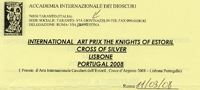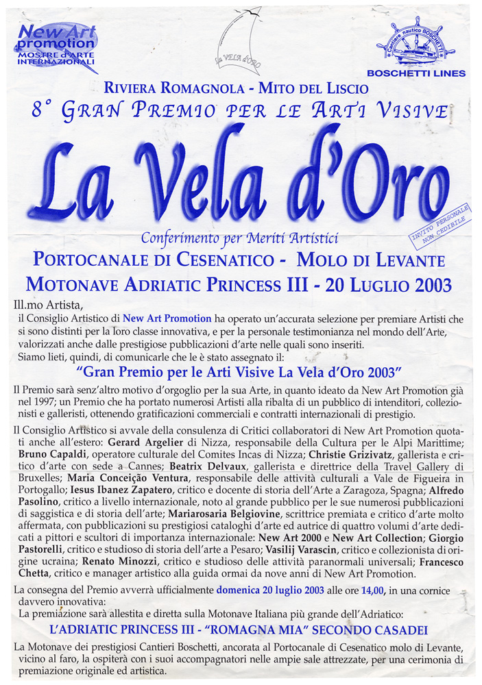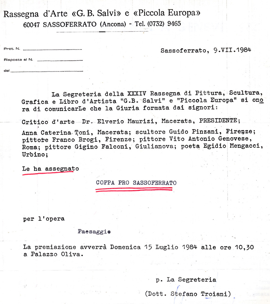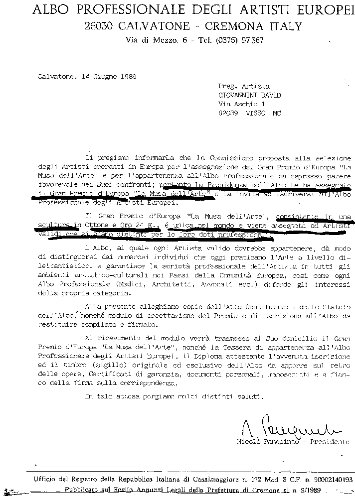 Accademia dei Maestri Brescia marzo 1988 Premio "Gran Trofeo: una vita per l'arte" Invito Biennale internazionale in omaggio a Caravaggio Leggi articolo |