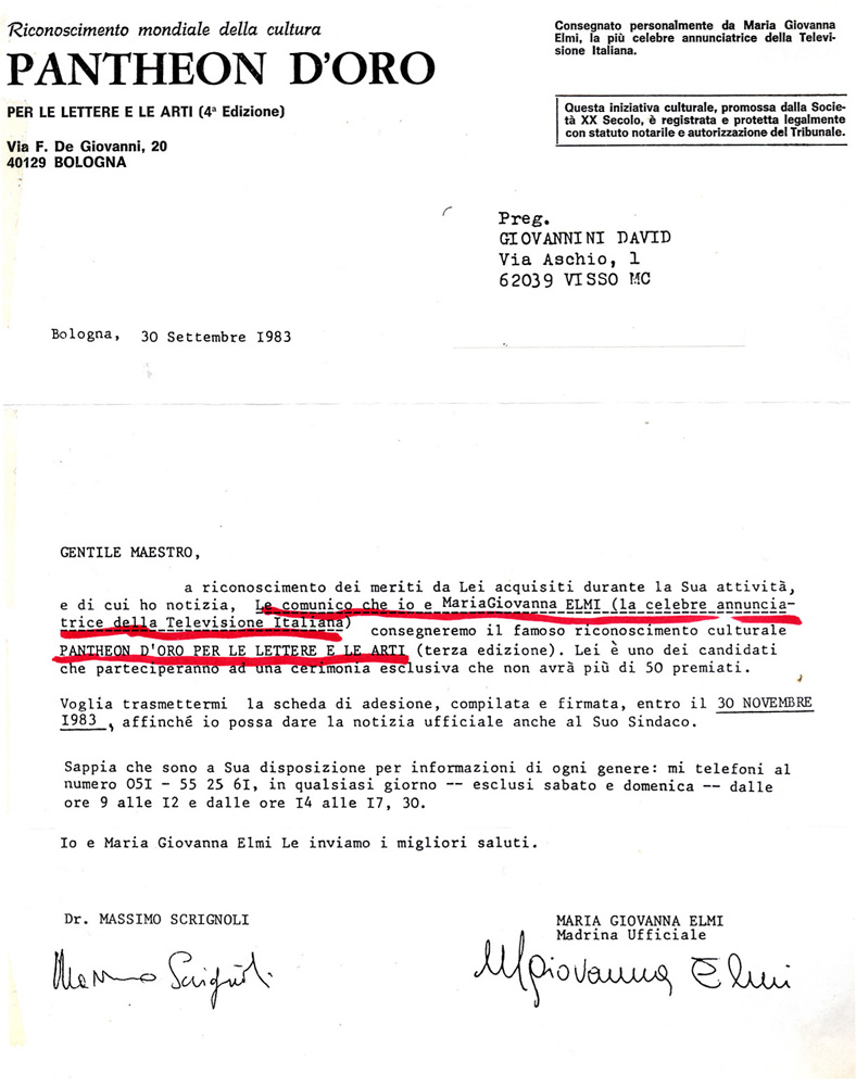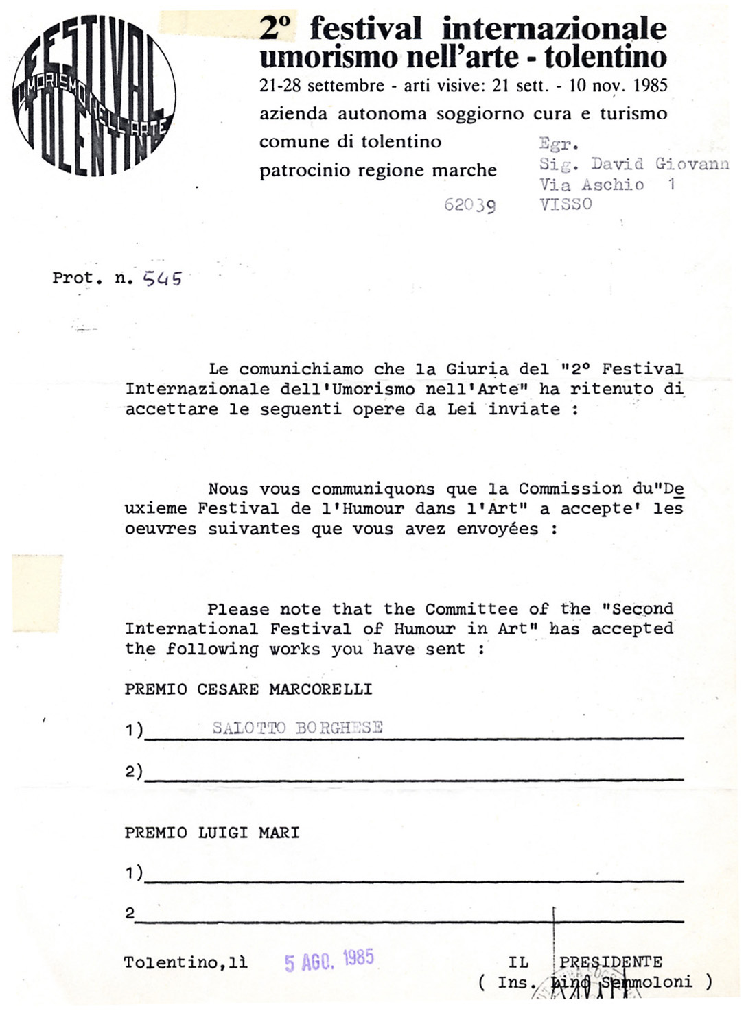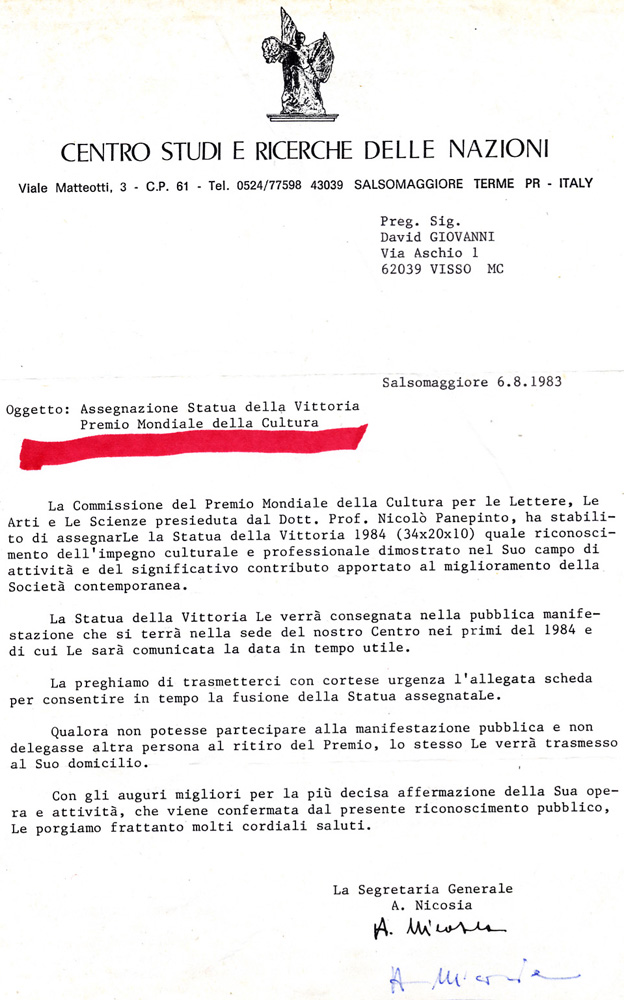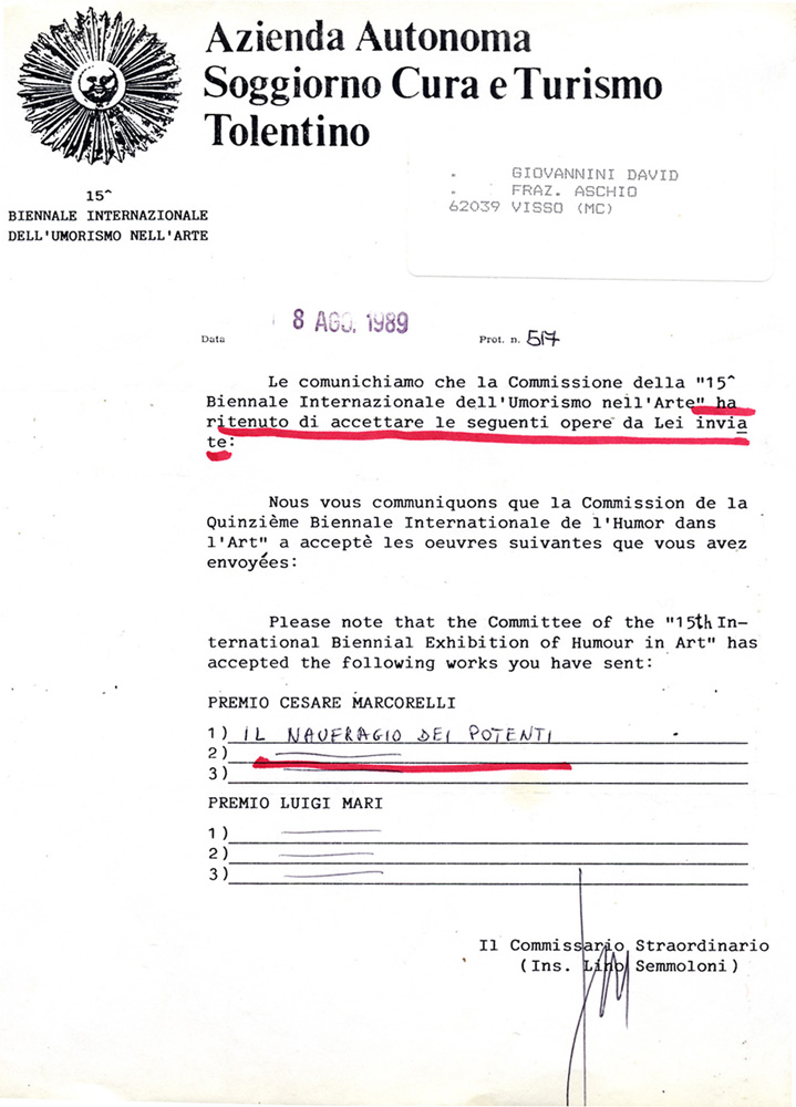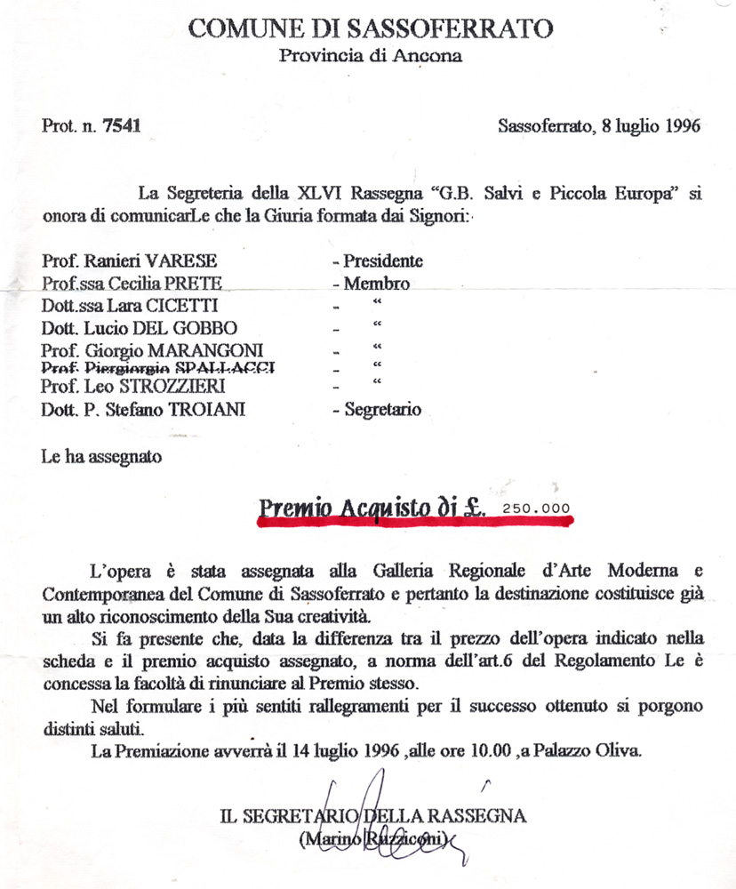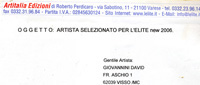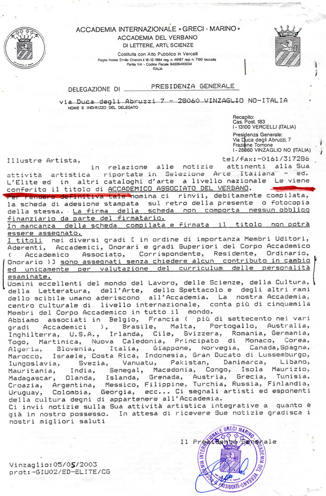 Accademia dei Maestri Brescia marzo 1988 Premio "Gran Trofeo: una vita per l'arte" Invito Biennale internazionale in omaggio a Caravaggio Leggi articolo |